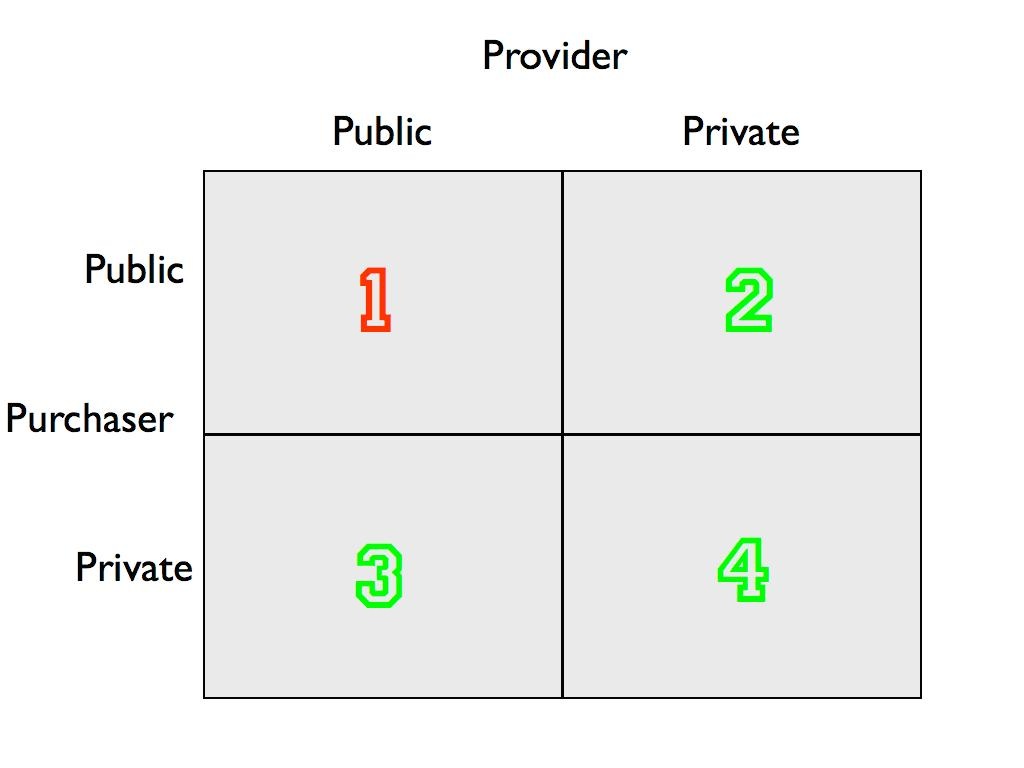 It helps to set out four types of relationship that arise when thinking about the provision of health services.